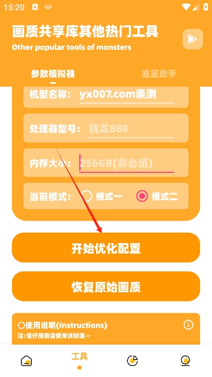 3、点击工具,为您提供了相关的参数模拟器,方便您进行优化操作