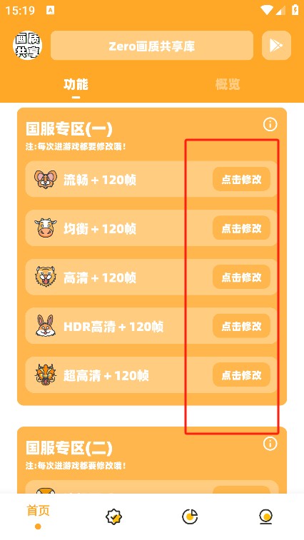 2、进入后您可以在首页选择你想要修改的画质